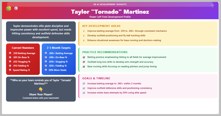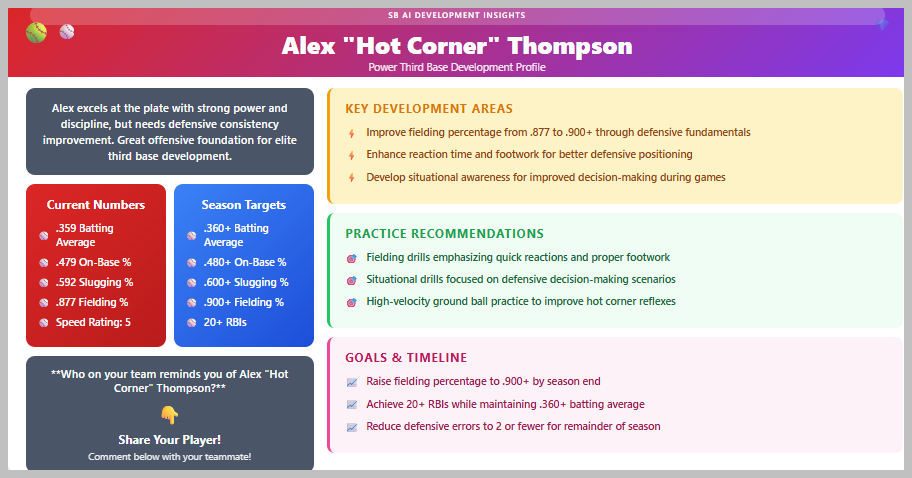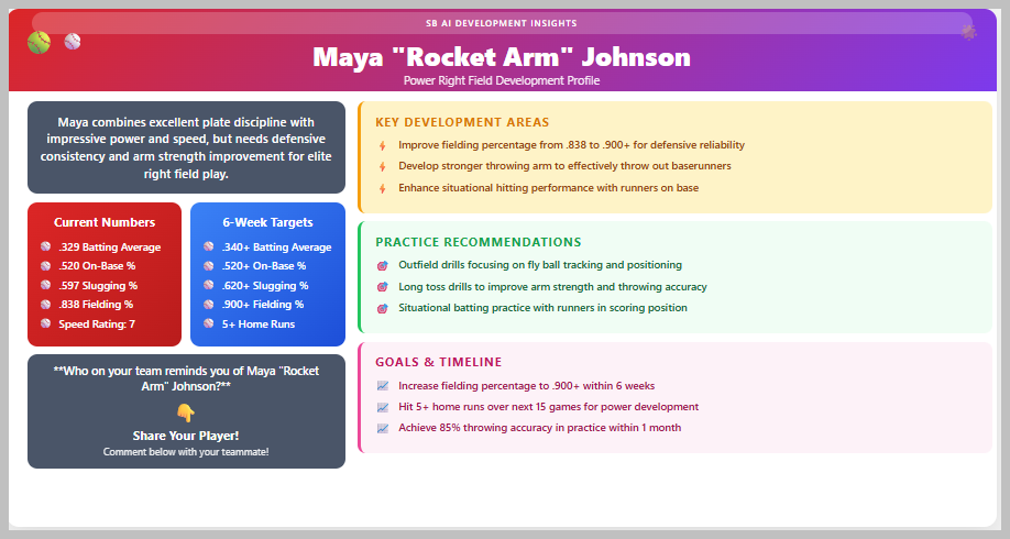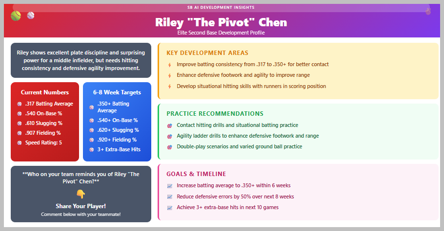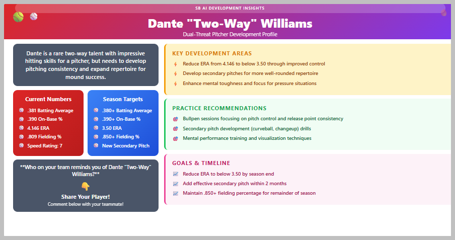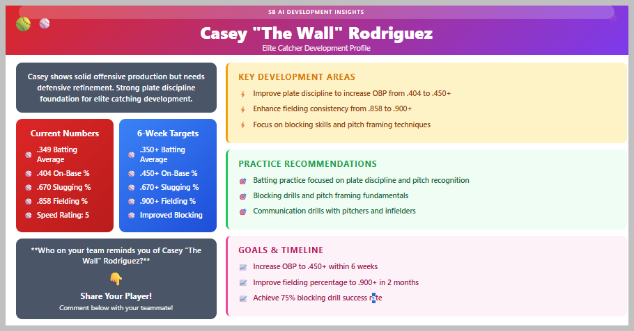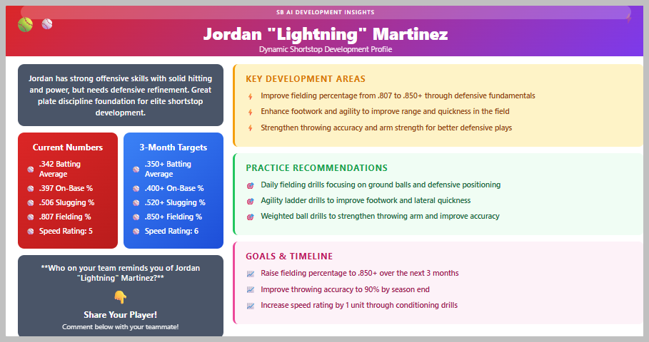 - A personalized training roadmap built from a player’s stats, strengths, and areas for improvement.