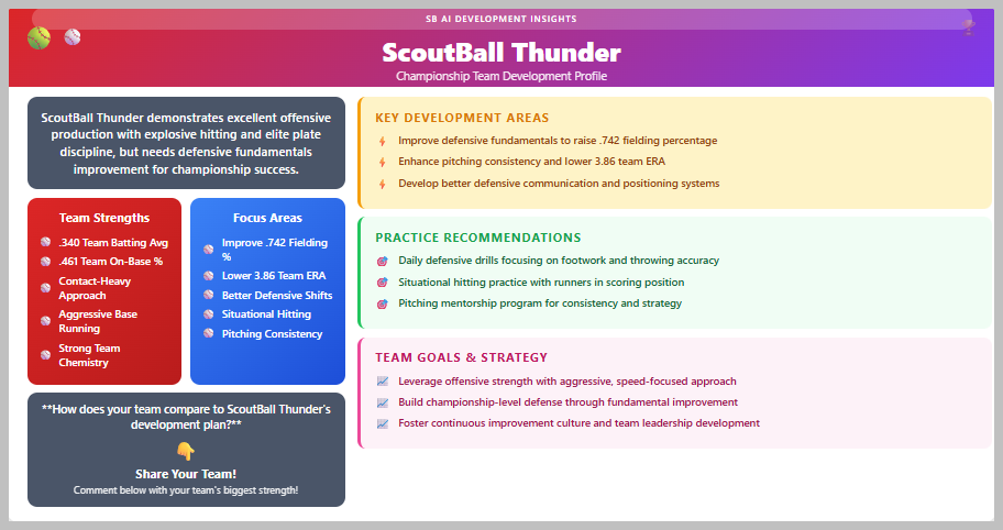 ScoutBall AI is a youth baseball analytics platform that transforms GameChanger stats into actionable insights for coaches, parents, and players. It combines pro-level sabermetrics, AI-powered practice plans, and lineup optimization—making advanced player development fast, clear, and accessible for every team.