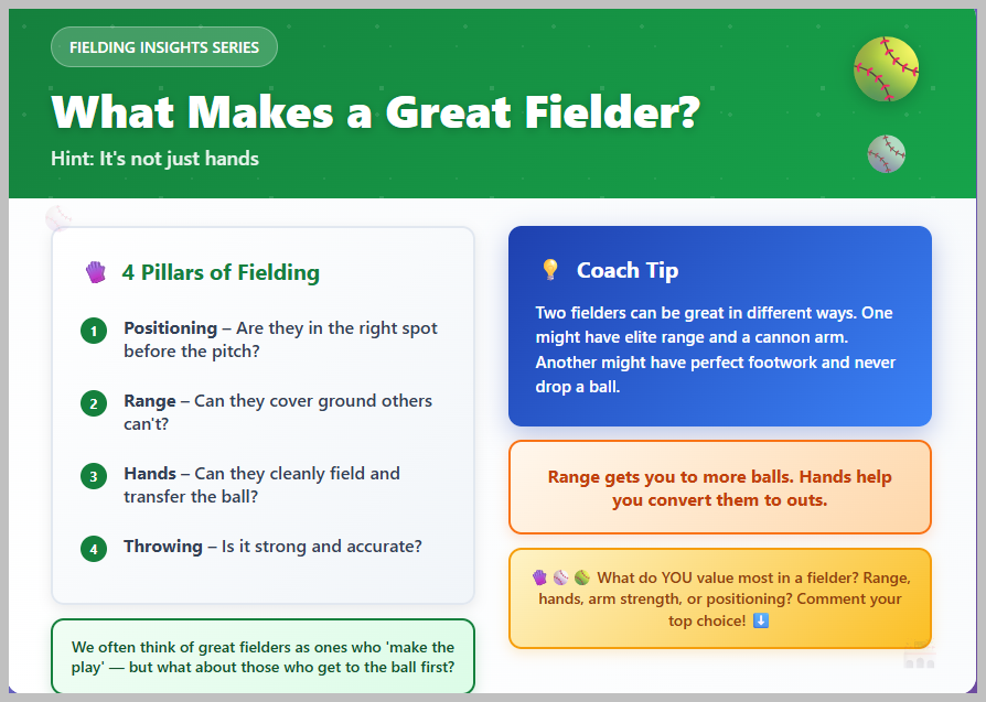 These principles apply equally to youth softball analytics for hitters, pitchers, and defense—mirroring how teams use the ScoutBall AI app and website for softball decision-making and development.